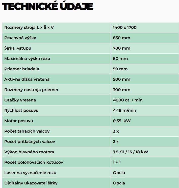 Maximální šířka dřeva: 700 mm.