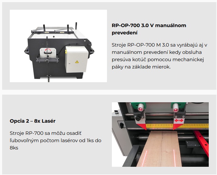 Rozmítací pila RP-OP-700 3.0 je ideálním řešením pro výroby které hledají pilu pro podélné dělení materiálu. Označení 3.0 naznačuje počet ocelových tahacích válců. V tomto provedení jsou tři tahací válce. Tato koncepce se doporučuje firmám, které nepracují s hrubými a dlouhými prizmy. Pro toto využití doporučujeme koncept s označením 4.2 tedy se šesti tahacími válci.