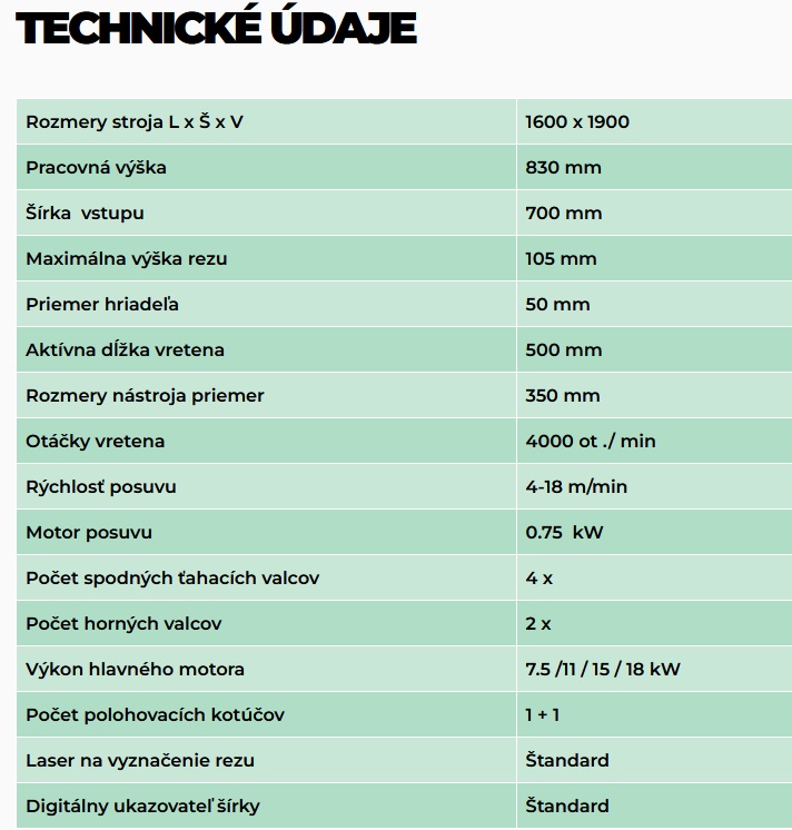 - Maximální šířka dřeva: 700 mm / 850 mm